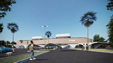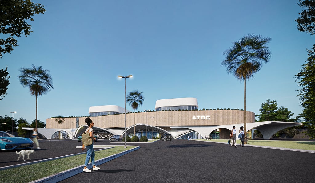 The innovative camera-inspired form and design elements bring a refreshing and modern perspective to cinema architecture in The Gambia.