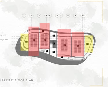 The structure adopts an organic design, with the lower level featuring sweeping open spaces to foster unrestricted circulation. This encourages easy access to and around the building.