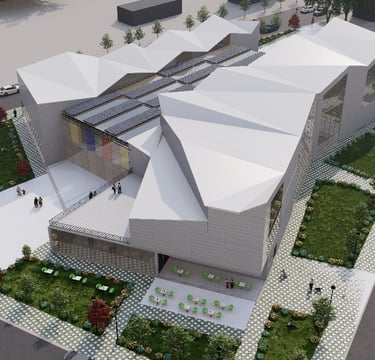 At the heart of this innovative design lies a concept inspired by exploration and discovery. The children's museum is envisioned as a journey through time and space, where each level represents a unique era — the past, present, and future — offering children an immersive educational and creative experience.
