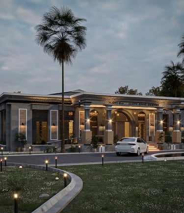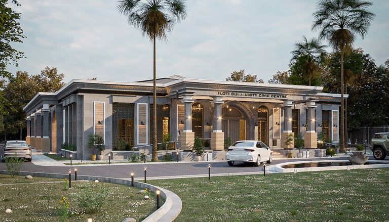 The Iloti Community Centre, located in Ogun State, Nigeria, is a visionary project designed to serve as a multifunctional hub for the Iloti community. This bold and elegant structure celebrates local culture while embracing modern architectural design, creating a space that reflects tradition and innovation. The center is designed to host a variety of events, including political gatherings, weddings, ceremonies, and business activities, ensuring its relevance to all aspects of community life.